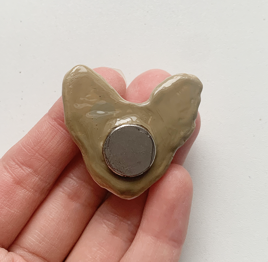 This is a handmade clay cat magnet with a small imperfection.